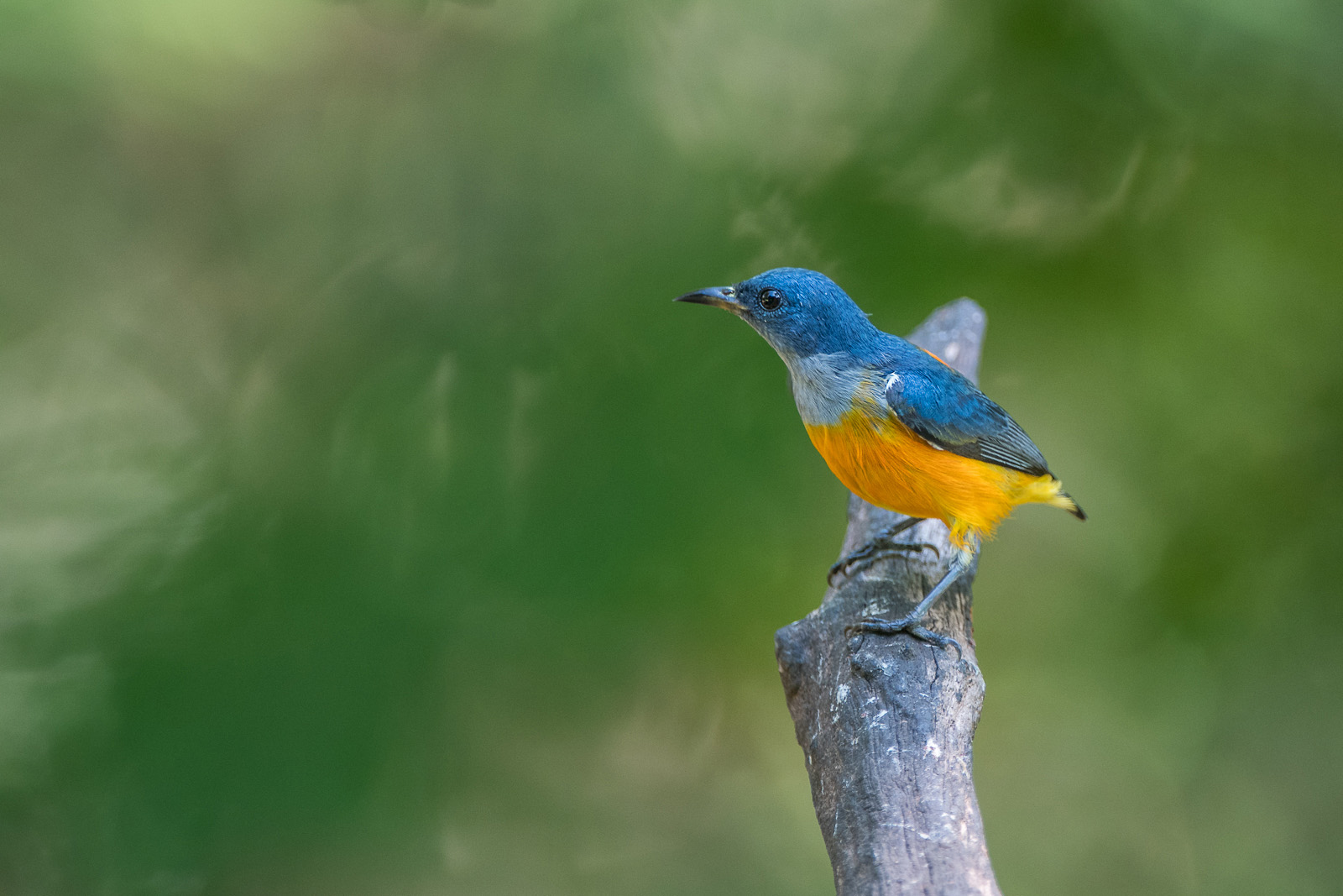 This may have been one of the smallest animals that I photographed in Thailand, but it had the best name — the orange bellied flowerpecker. A lovely little bird of equal parts orange and blue. This is the male of the species. The female is more uniformly yellow with a bit of black.