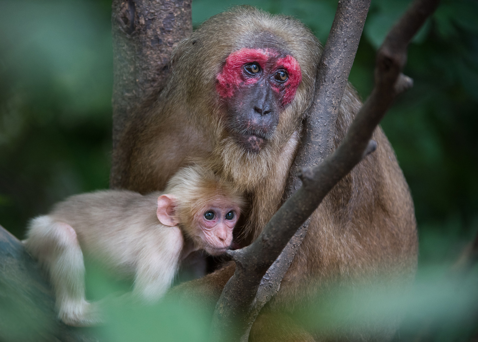 Stump-Tailed Macaque Mother and Baby