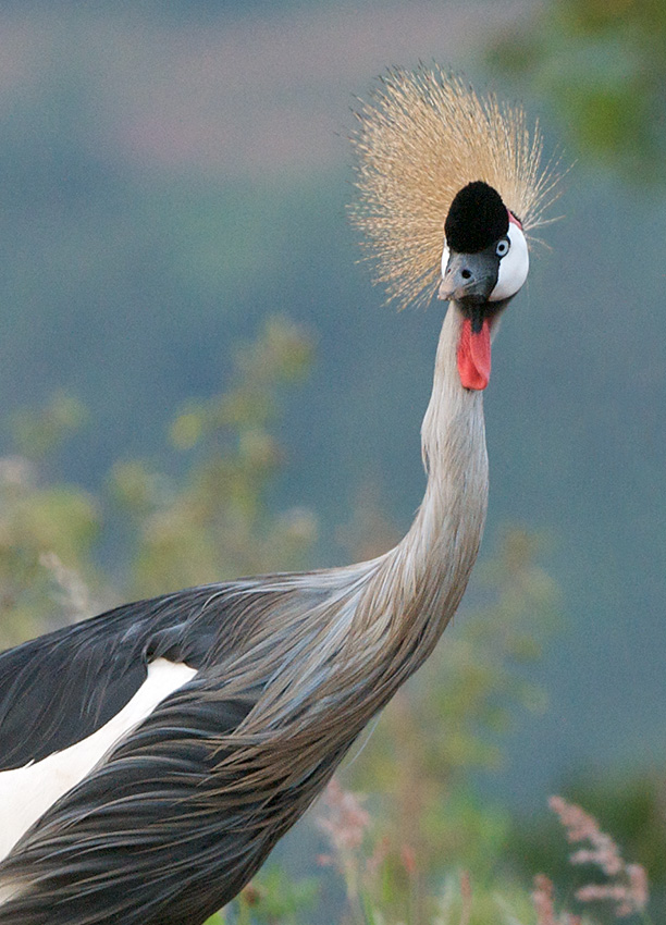 Certainly, the crested cranes of eastern Africa are among the finest looking of all the cranes. This one was photographed on an island in the middle of Lake Bunyonyi in Uganda. They are also sometimes called crowned cranes, or crested crowned cranes.