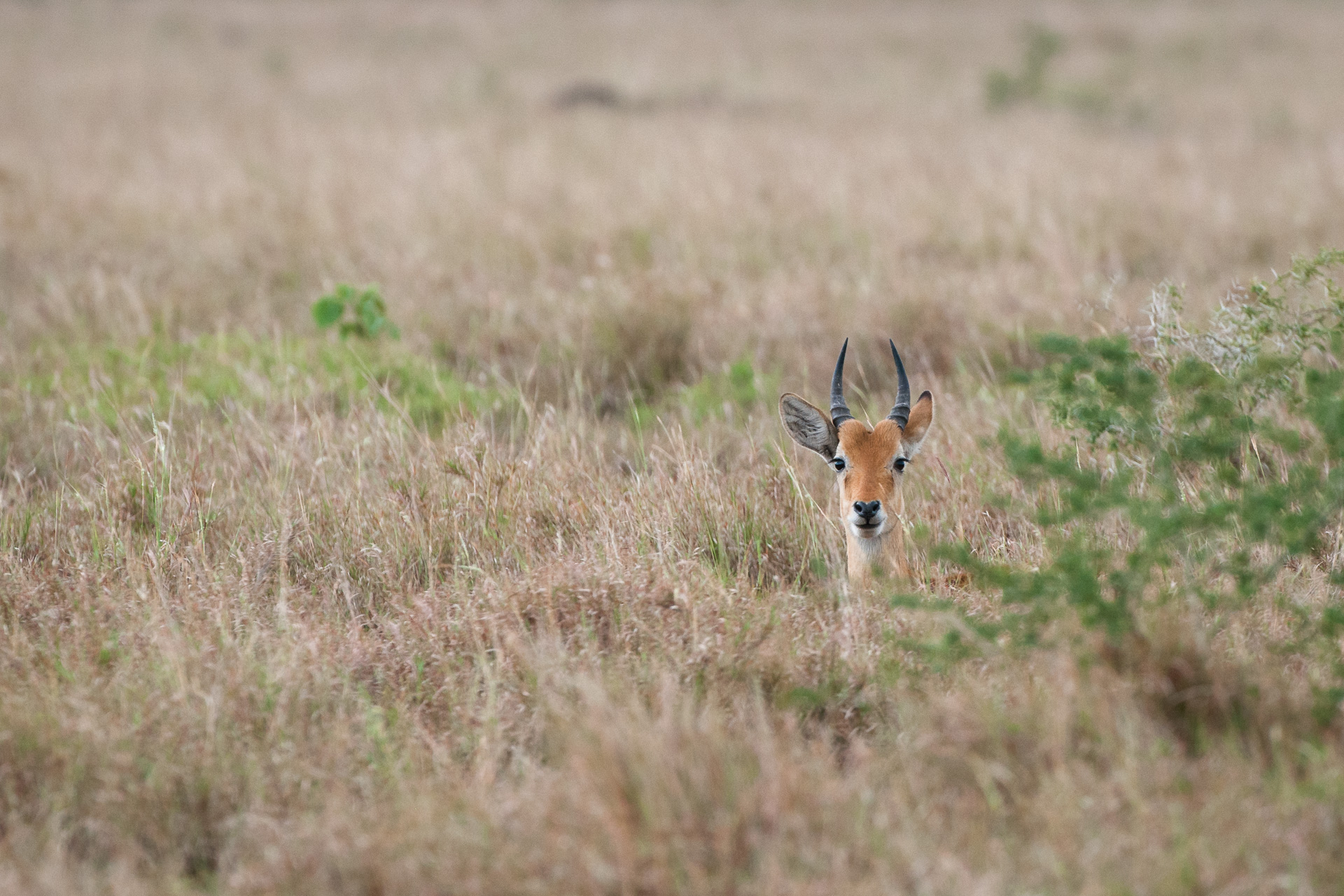 The kob is a national symbol in Uganda, appearing on the coat of arms opposite a crested crane, the national bird. Kobs, which occur throughout sub-Sahara Africa, resemble impala, but are beefier. The males have impressive horns, although this young male hadn’t quite developed his yet. He was relaxing in tall grass but kind of looked like he was burrowing in the ground. Nikon D300 with Nikkor 200-400mm lens (at 400mm) ISO 400, f/5.6 at 1/160th of a second