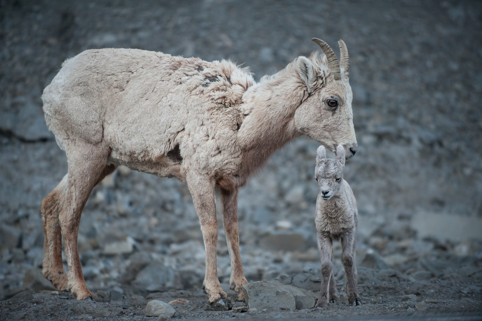 Bighorn lambs are typically born on steep, rocky cliffs — natural nurseries that help protect them from predators in their most vulnerable days. The ewe stays close, nursing frequently and guiding her lamb through increasingly difficult terrain as it gains strength. Within just a week, the lamb can scale ledges with surprising agility, always keeping its mother in sight. To see more maternal behavior from nature, check out the “Mother’s Nature” wall calendar I just added to my shop at www.specieslimted.com. Nikon D700 with Nikkor 70-200mmm lens (at 200mm) ISO 1600, f/2.8 at 1/400th of a second.