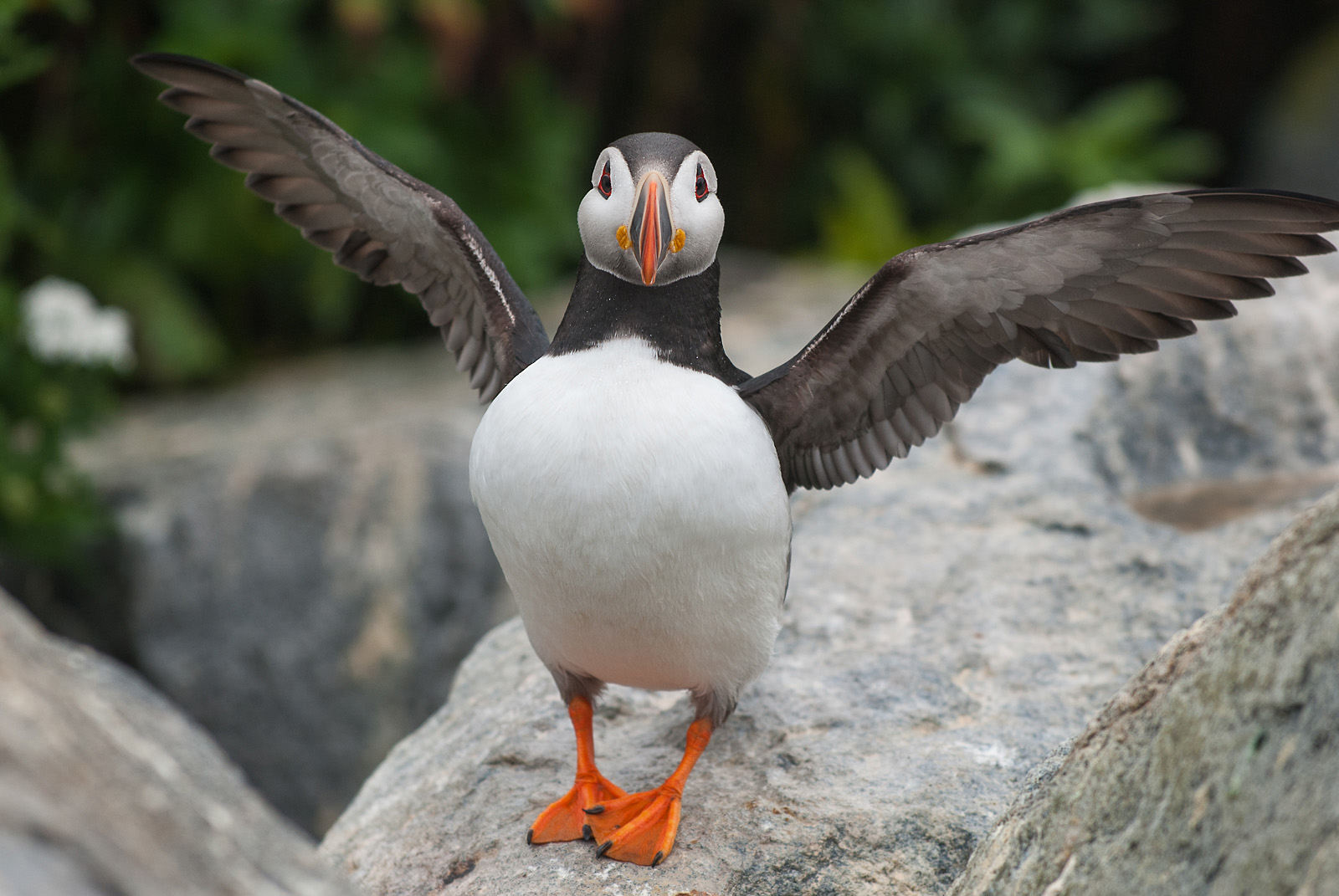 An Atlantic puffin stretches its wings on Machias Seal Island. As I’ve mentioned in past posts from this location, the island is a disputed territory between the US and Canada. I never knew there were land disputes between the countries. The US claims it’s part of Maine. Canada claims it’s part of New Brunswick. The puffins don’t seem to care either way. Nikon D200 with Nikkor 70-200mm lens (at 200mm) ISO 200, f/4 at 1/500th of a second.