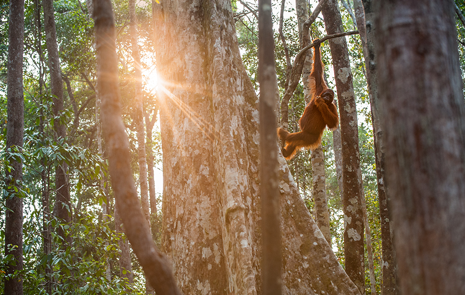 Frame filling shots of orangutans in Tanjung Puting National Park in Indonesia are easy to get because the orangutans there are so habituated to people. In this shot, my aim was to go a bit wider and incorporate the forest environment where they live. Seeing these large red apes swinging through their natural habitat is quite a sight. The entire forest seems to sway with the weight of their bodies. Nikon D700 with Nikkor 70-200mm lens (at 102mm) ISO 800, f/4.5 at 1/640th of a second