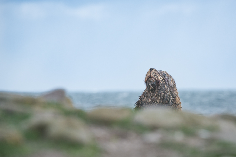 This southern sea lion wasn’t quite buying what I was selling. Still, he posed for a few quick shots before taking his business elsewhere. I was hiking along a remote coastline on Carcass Island in the Falklands where these sea lions are usually pretty timid. I had to be very still while photographing this large male. The males, as I mentioned in a previous post, really live up to their name with that mane of thick lion-like hair. Nikon D800 with Nikkor 200-400mm lens (at 400mm) f/6.3 at 1/800th of a second