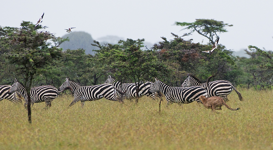 Birds spring aloft—-Spots and stripes in deadly play—-To live another day.