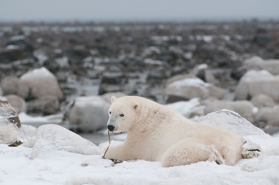 I also wanted to pay tribute to my mother’s dog Rogan today. Rogan passed yesterday after a long, happy life. Rogan was a golden/Irish setter mix, not a polar bear, but he did like to lie on the ground in the exact pose as the bear below — a position, no doubt he’s in right now in doggie heaven. Rest well Rogan. Top Photo: Nikon D700 with Nikkor 17-35mm lens (at 35mm) ISO 400, f/6.3 at 1/1600th of a second