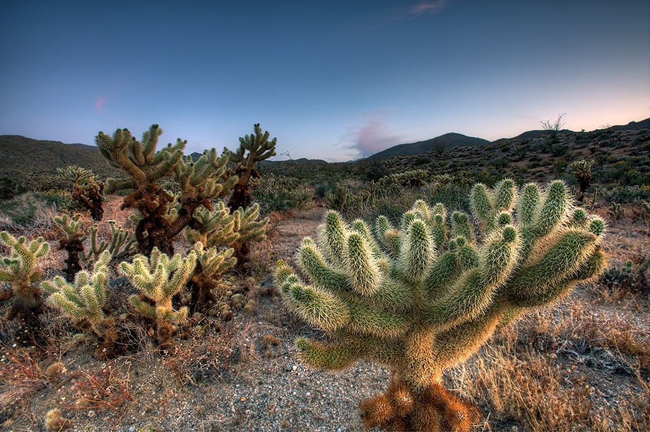 Here’s another species of cactus, this time in Anza-Borrego State Park in southern California. It was getting dark when I took this shot and I ended it up with quite a few pieces of the prickly stuff stuck to my legs by the time I made it back to the car.