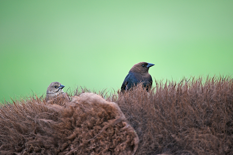 You never know what you might find in a bison’s fur. In this case, a male and female cowbird — the female on the left, male on the right. I found it amusing that they always seemed to be looking in the same direction at the same time. As for the bison, he was just happy to be going about his business of eating grass, oblivious to the new tenants on his back. This is another one from the Badlands trip. Nikon D800 with Nikkor 200-400mm lens (at 400mm) ISO 800, f/4 at 1/500th of a second