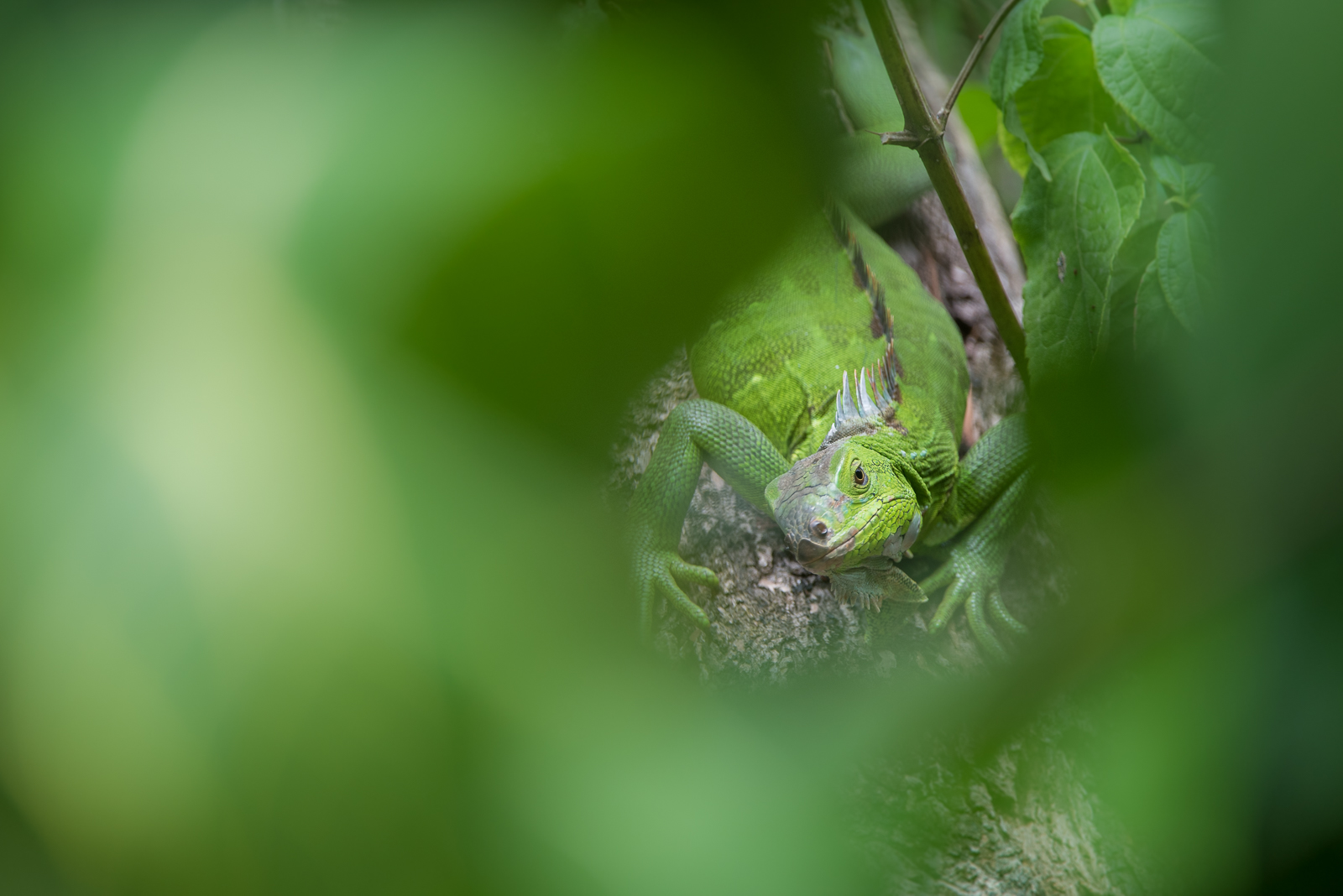 This green iguana seemed to be peaking curiously at me through the opening in the vegetation. He put on quite a show, just outside the main veranda of the Asa Wright Nature Center in Trinidad. Nikon D810 with Nikkor 200-400mm lens (at 400mm) ISO 400, f/4 at 1/500th of a second