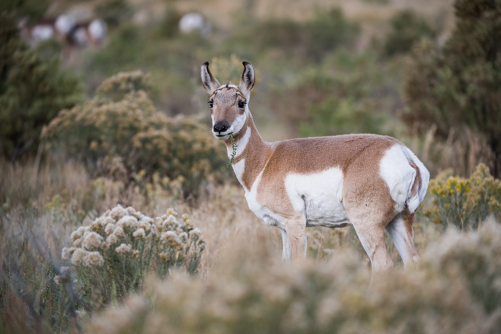 I caught this female pronghorn at the salad bar. She seemed to really enjoy the variety of options at her disposal in this particular little corner of Yellowstone National Park. Nikon D810 with Nikkor 200-400mm lens (at 260mm) ISO 800, f/4 at 1/500th of a second.