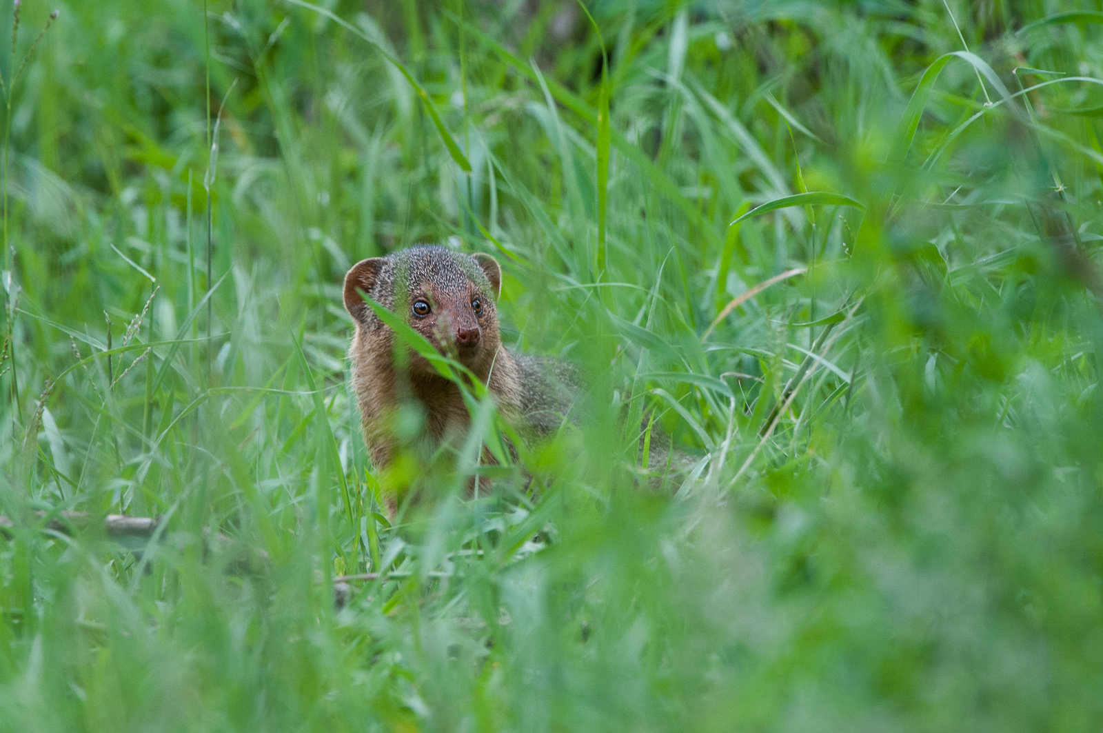 This little dwarf mongoose was lurking in the tall grass around a camp we were staying at in the Masai Mara of Kenya. As the name would suggest, it is a rather small mongoose, growing to only about 11 inches long. It also has the distinction of being Africa’s smallest carnivore. Nikon D300 with Nikkor 200-400mm lens (at 400mm) ISO 400, f/6.3 at 1/160th of a second