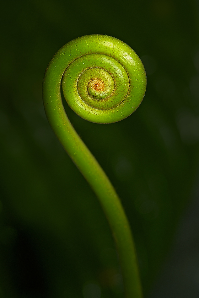 Here’s a rarity from me — nature with no creatures attached. Just a simple shot of a fern frond before unraveling. I was shooting tree frogs at the time on a drizzly night in the Ecuadorian cloud forest. Nikon D700 with Nikkor 105mm macro lens, ISO 200, f/10 at 1/60th of a second, two Nikon SB-90 flash units on a circular flash bracket