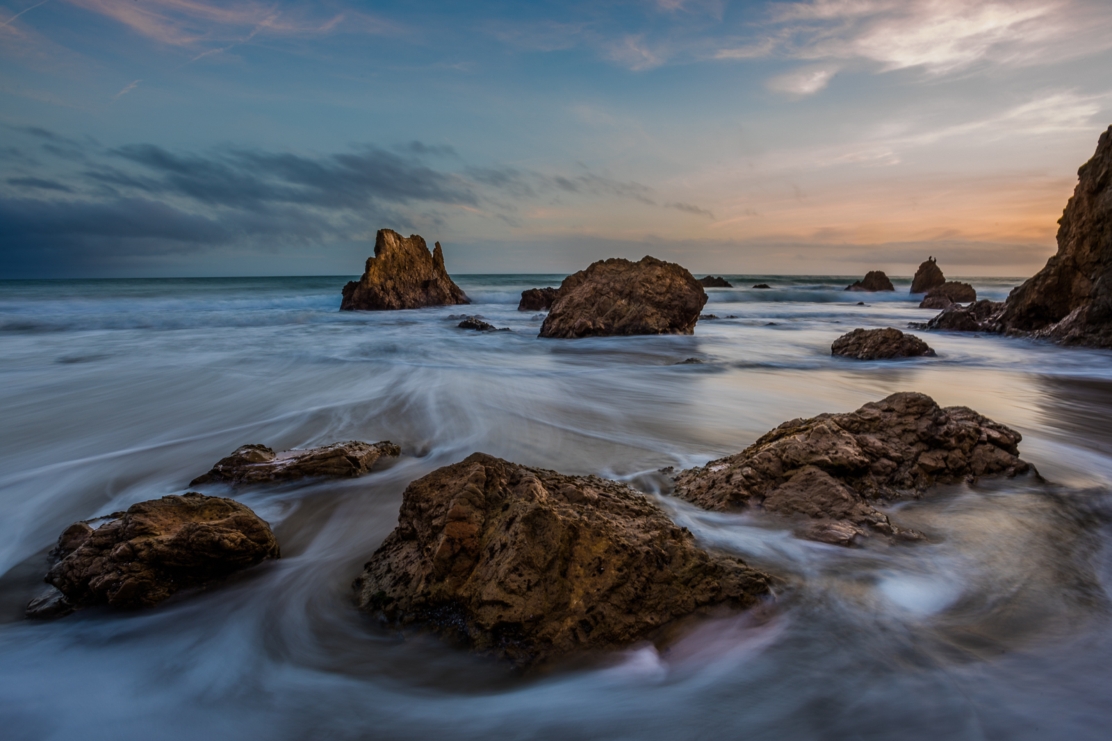 Yesterday I posted a cormorant up on the cliffs at El Matador State Beach in Malibu. Here’s a shot from down below at the water line. You can actually see two more cormorants perched on the distant rock to the right. I used a tripod and a two second exposure to blur the movement of the incoming waves as they circled the foreground rocks. Nikon D810 with Nikkor 17-35mm lens (at 17mm) ISO 50, f/20 at 2 seconds