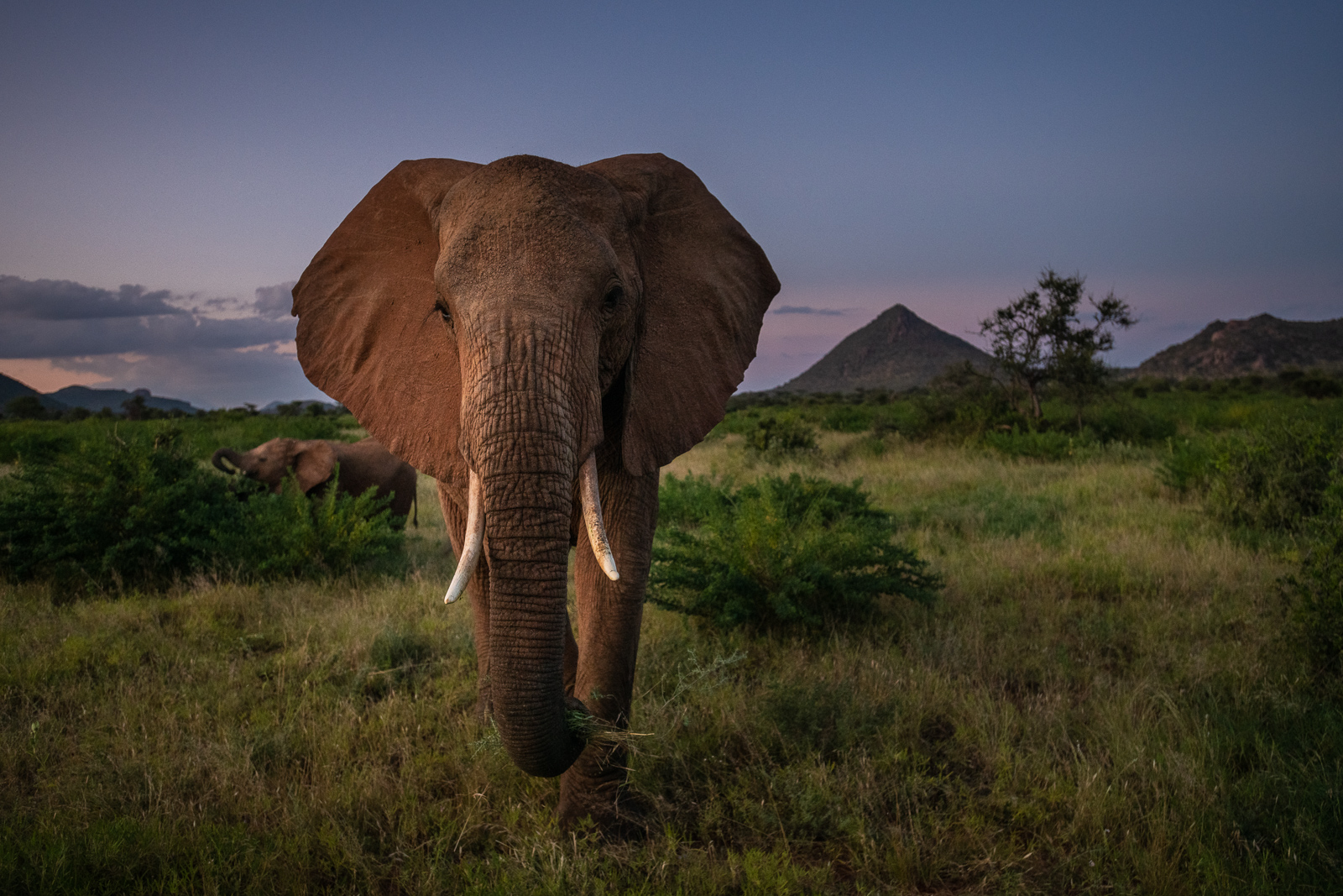 This recent trip was very good for elephants, both in Samburu (pictured above) and the Masai Mara. They seemed to be everywhere. And lots of newborns too, which I’ll post soon. This particular troop of elephants came very close to our vehicle at the very end of the day and I was able to use my wide-angle lens and graduated neutral density filter to hold the color and detail in the sky while still exposing for the foreground’s quickly disappearing light. I was also able to capture one of Samburu’s most characteristic landscape features — that pyramid-shaped peak in the background. Nikon D850 with Nikkor 17-35mm lens (at 30mm) ISO 1600, f/4 at 1/320th of a second.