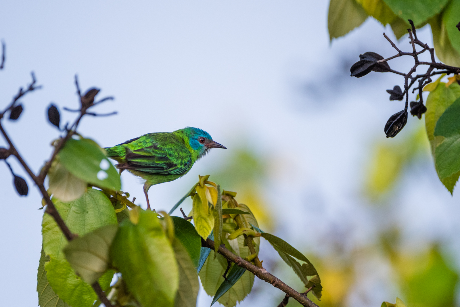 The blue dacnis is a small bird in the tanager family, and one of rare species of bird where the female plumage gives the male a run for its money. The males are turquoise blue and black while the females are mostly green with a blue head. They range from mid-Central America down to northern Argentina. I photographed this one in Soberania National Park in Panama. Nikon D810 with Nikkor 200-400mm lens (at 400mm) ISO 800, f/4 at 1/5000th of a second