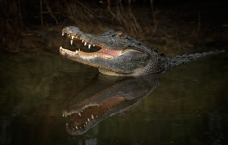 In the past two days, we’ve seen a Wildcat and a Badger — here’s Final Four team number three, the Florida Gator. This one is a bit closer to the mark, too, having been photographed in St. Augustine, just about an hour and a half drive east of the University of Florida campus in Gainesville. The U.S. species is appropriately called the American alligator, not to be confused with his cousin, the American crocodile — the latter having a longer, more slender snout, among other differences. American alligators are apex predators, preying upon fish, amphibians, birds, reptiles and mammals. The question is, will it be the predator or prey come Saturday? Nikon D700 with Nikkor 200-400mm lens (at 350mm) ISO 400, f/5.6 at 1/50th of a second