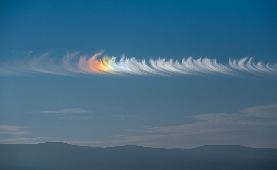 Me either. It was so odd, that one fiery spot on the wispy horizontal cloud.