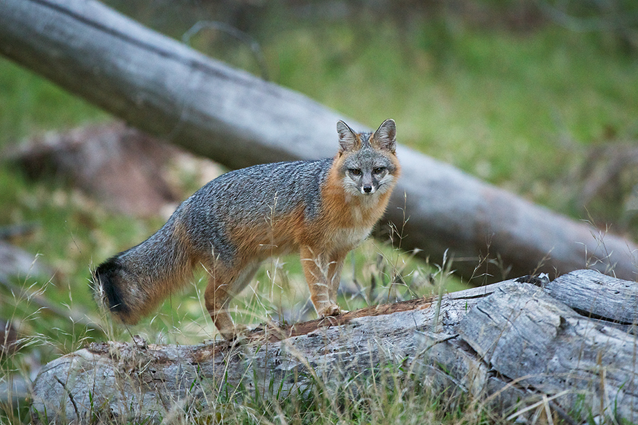 I was in Zion National Park in Utah over the weekend on business, but still managed to squeeze in a little time to get out and see what I could find. I arrived at the lodge after dark on Thursday and saw three grey foxes running around the parking area. I was determined to get out and find them again during daylight hours. Meetings finished early on Saturday and I was able to get out for about half an hour or so before heading to a client dinner. Sure enough, that was all I needed to find this dashing specimen. I managed quite a few shots as it meandered through the woods, dodging in and out of the grazing mule deer. I’ve been fortunate enough to photograph many red fox over the years, but the grey fox has eluded me for the most part. Both foxes have a mix of red and grey fur, but those colors are distributed in a different pattern and the grey fox lacks the characteristic white tail tip of the red fox. Nikon D800 with Nikkor 200-400mm lens (at 400mm) ISO 3200, f/4 at 1/200th of a second