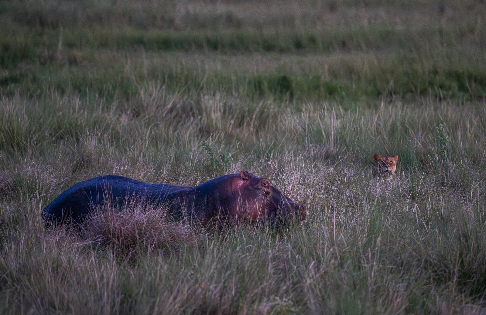 It was early evening and getting very dark when I took this photo of a lion stalking a hippo. The camera was struggling to focus, but I was able to get a few sharp images at high ISO as a pride of young male lions gave it their best attempt. The hippo charged back a few times and ultimately the lions realized they weren’t up for the task and they moved on. Nikon Z8 with Nikkor 500mm PF lens, ISO 12800, f/5.6 at 1/500th of a second.