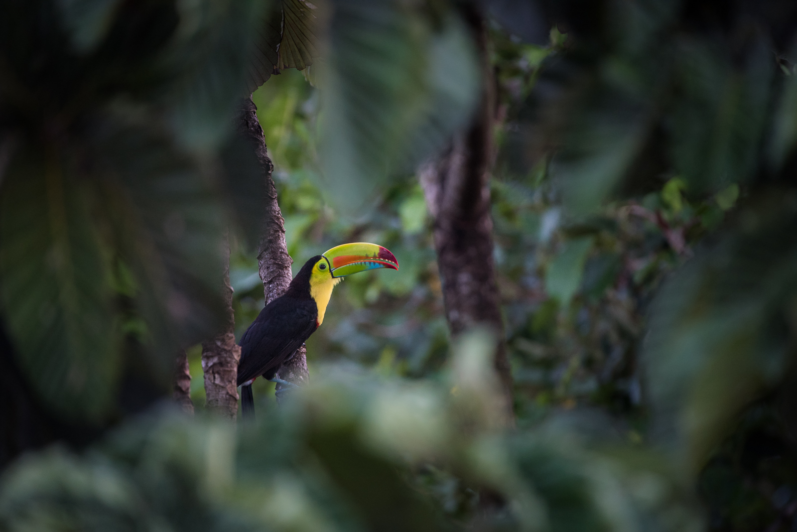 I’ve posted two other keel-billed toucan photos since my Panama trip back in May. But I really do think they’re among the best looking birds in the world. So… here’s another. I spotted this guy through a small opening in the cecropia trees while on the rooftop of the Canopy Tower. The Canopy Tower lodge was once a US military fort, but was converted into an eco lodge. It’s only about an hour from Panama City. The rooftop deck affords visitors an eye level view of the rainforest canopy — the favorite spot for keel-billed toucans and other birds (and many other creatures) to hang out. Nikon D810 with 200-400mm lens (at 400mm) ISO 1600, f/4 at 1/160th of a second