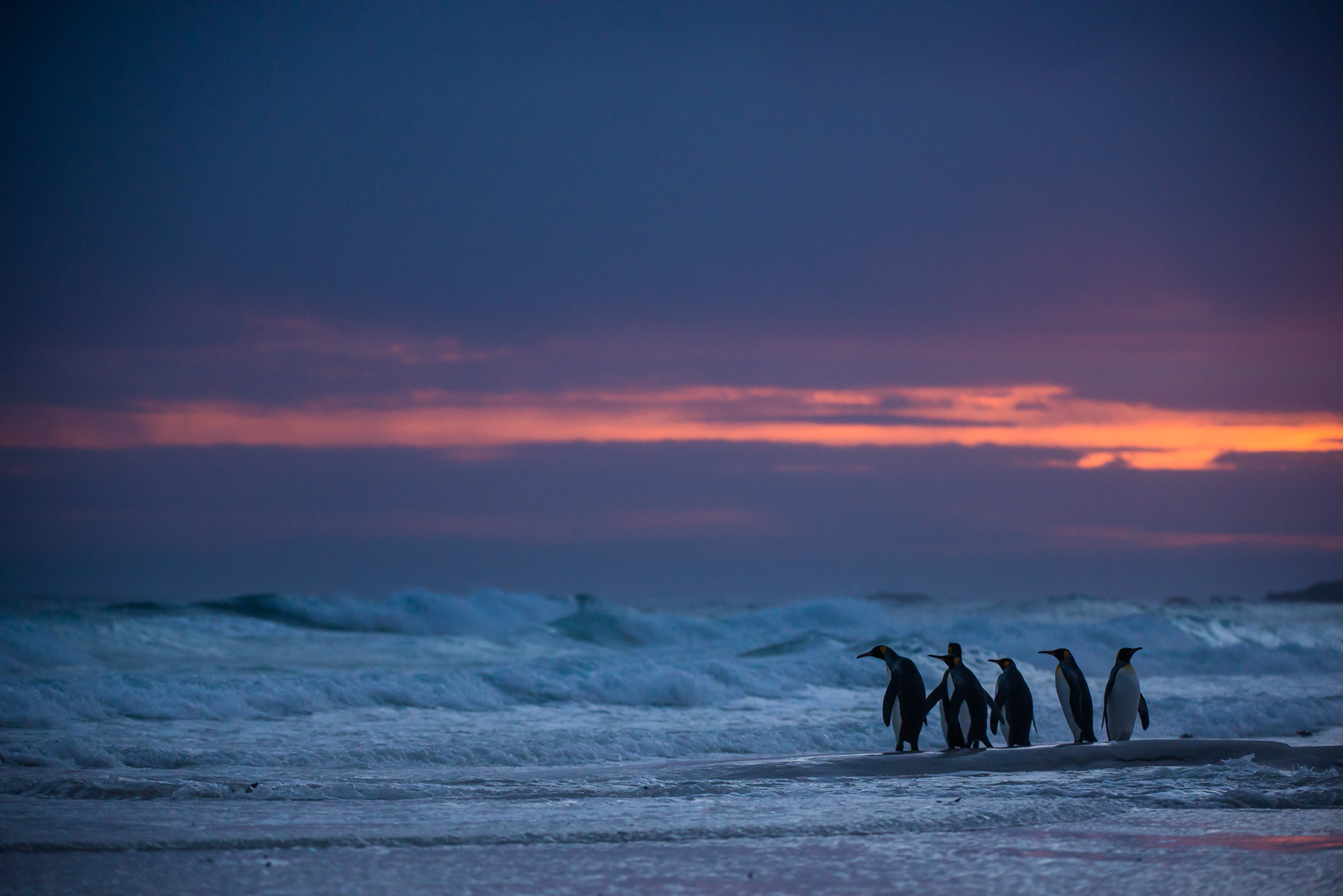 King penguins can be very comical first thing in the morning. They are extremely tentative as they contemplate actually getting into the water. These guys all seemed to be waiting for someone to take the plunge before joining in. Nikon D800 with Nikkor 200-400mm lens (at 200mm) ISO 1600, f/4 at 1/800th of a second