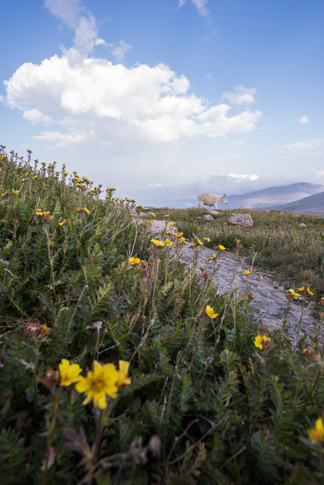 Here’s another one from last weekend in Colorado. In this photo I wanted to show a bit of the alpine tundra and late summer wildflowers that blanket the ground at higher elevations where mountain goats roam. Nikon D810 with Nikkor 17-35mm lens (at 17mm) ISO 800, f/14 at 1/160th of a second