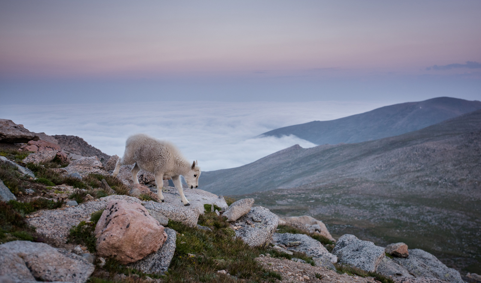 A young mountain goat walks high above the clouds near the top of Mount Evans in Colorado. Sorry that posts have been a bit intermittent as of late (or maybe that’s a good thing). Karen and I have been busy moving into our new house. Once that’s settled I’m looking forward to getting back out into the wild for all new images to share. Nikon D810 with Nikkor 17-35mm lens (at 35mm) ISO 800, f/4 at 1/400th of a second.