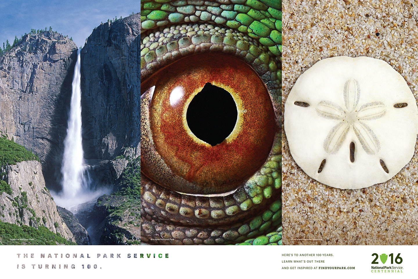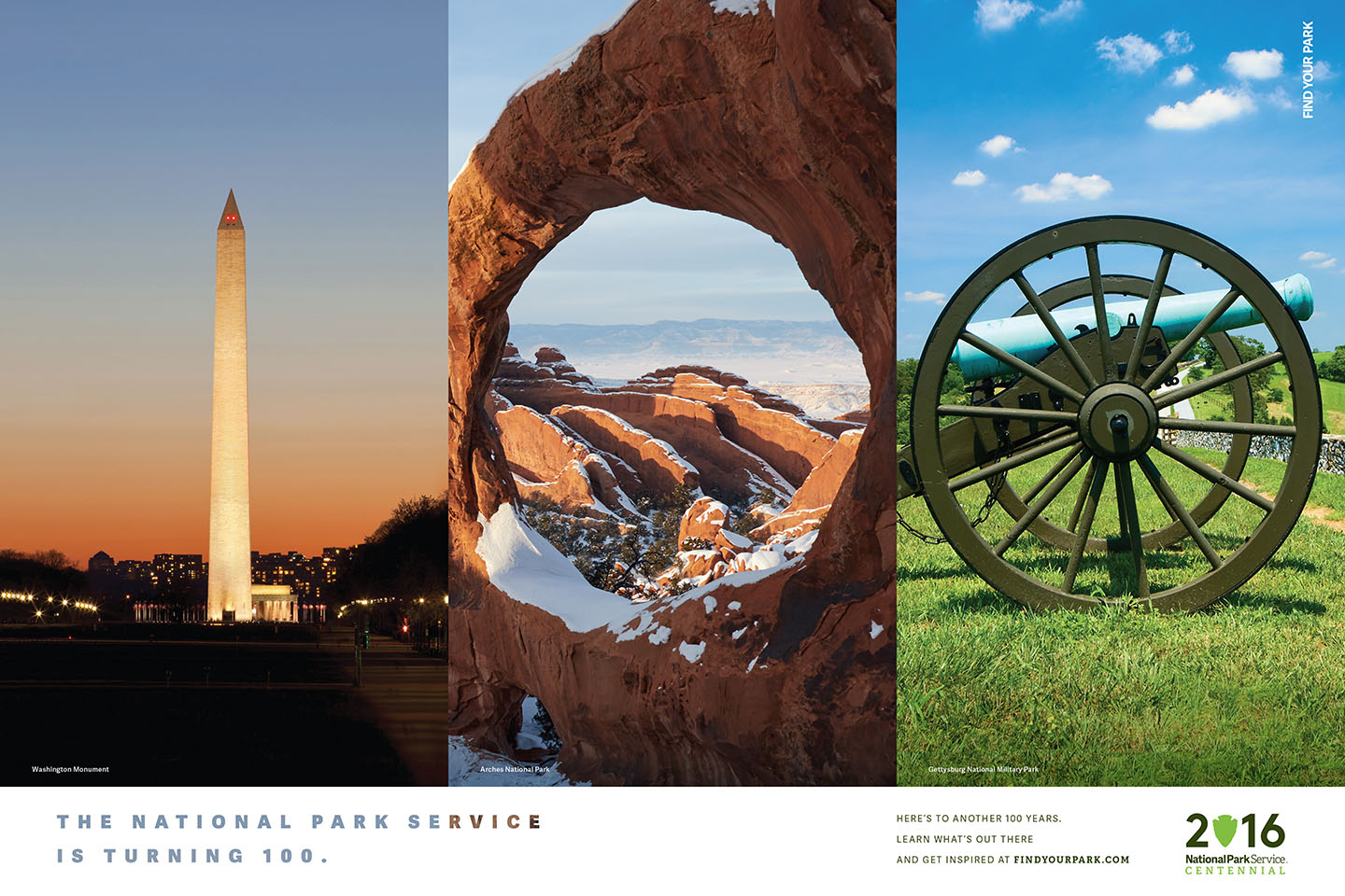 A break from the wildlife postings for a little something different today. As some of you know, in my day job, I’m a creative director and writer for an advertising agency. One of my accounts is the National Park Service. I’ve been working on the account for the last four years. Everything my team and I have done was leading up to today — the 100 year anniversary of the National Park Service. Our goal was to redefine what a park can be for current and future generations of Americans. Parks aren’t just places of wild, physical beauty, they’re also places of historical significance, places of remembrance, of recreation and more. Below is just a small sample of the work we did, starting with video and print for the Park Service (you might recognize quite a few of my photos in the PSA), then the Park Foundation, and finally work for today’s Centennial celebration.