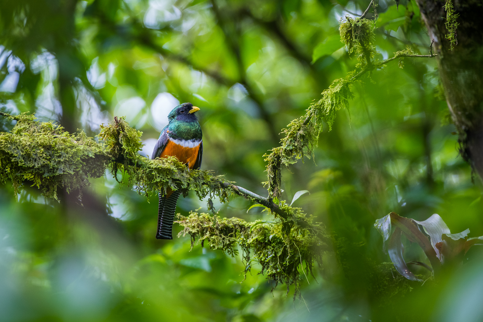 I’ve mentioned before that trogons are among my favorite birds. There are thirty-nine species that live in tropical regions throughout the world. I’ve photographed quite a few of them, but it’s always nice to find yet another. This time it was the orange-bellied trogon that I spotted while hiking a forest trail in El Valle, Panama. I saw both the male (pictured) and female. The females are beautiful birds as well, but not quite as colorful with their brown heads and yellow bellies. Nikon D810 with Nikkor 200-400mm lens (at 400mm) ISO 800, f/4 at 1/200th of a second