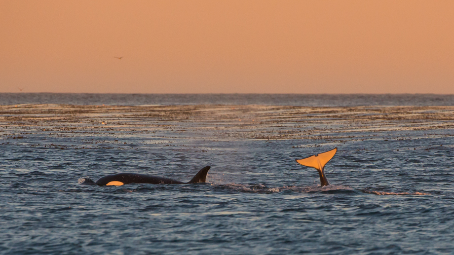 I usually only honor requests from those under ten years of age, but my boyhood friend Lonnie Quinn requested an orca the other night and an orca I shall deliver. In fact, here are two shots of orcas — hunting close to shore on Sea Lion Island in the Falklands. The light changed from the orange hues of sunset to the blues of twilight as the orcas patrolled vigilantly for careless sea lions and elephant seals. Top shot: Nikon D800 with Nikkor 200-400mm lens (at 400mm) ISO 1600, f/5.6 at 1/1600th of a second