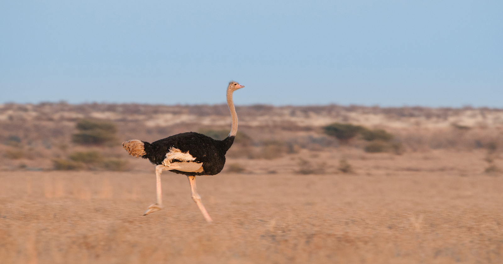 The ostrich is the largest bird in the world. Males can grow to more than nine feet tall and weigh in at over 250 pounds. They also have the largest eyes of any land vertebrate with a circumference of two inches. That whole hiding-their-heads-in-the-sand-to-avoid-danger thing is just a myth. I was tracking this large boy as he raced across the flat grasslands of the Central Kalahari Game Reserve in Botswana. Nikon D300 with Nikkor 200-400mm lens (at 400mm) ISO 800, f/5.6 at 1/125th of a second