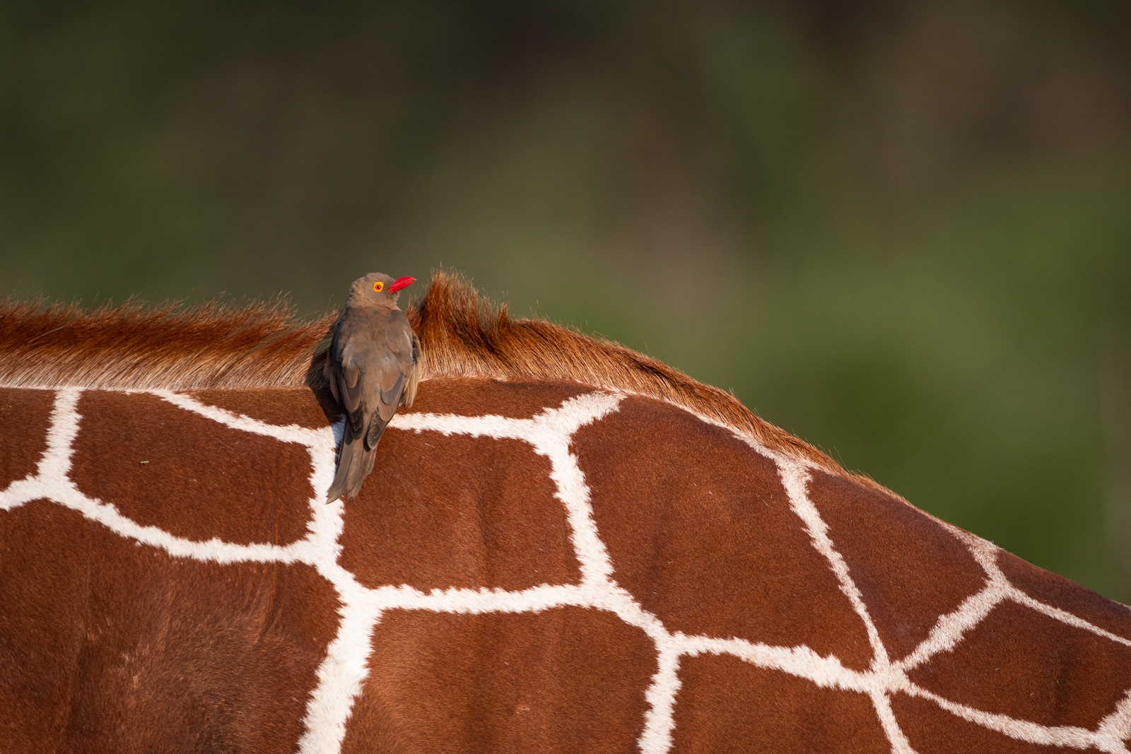 Where there’s a giraffe, there’s usually an oxpecker. This is the red-billed oxpecker, atop a reticulated giraffe. Photographed in Samburu National Reserve in Kenya. Nikon D500 with Nikkor 200-400mm lens (at 400mm) ISO 400, f/4 at 1/1600th of a second.