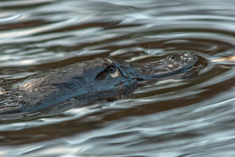 Silken water wraps the bill —- A hint of fur a reptile eye —- Cute but venomous to boot .