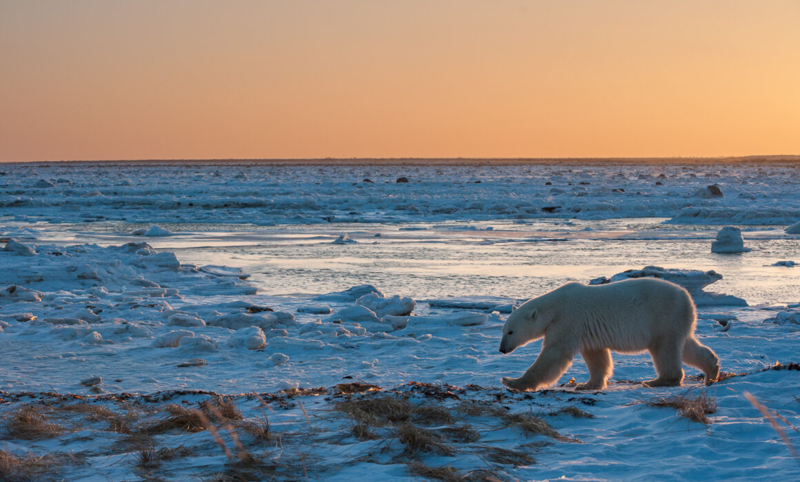 Days are short come November in northern Manitoba. But when the sun gets low on the horizon it can cast a magical glow across the frozen landscape. When a polar bear just so happens to be walking past, things get even better. Nikon D700 with Nikkor 70-200mm lens (at 82mm) ISO 800, f/8 at 1/1600th of a second.