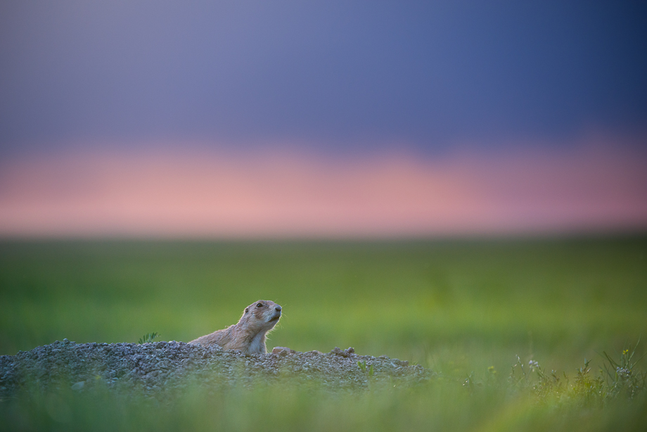 Like yesterday, here’s another sunset shot, but with a completely different animal in a completely different part of the world — a prairie dog in the Badlands of South Dakota. I liked that there are three almost evenly distributed colors in the composition. I used a graduated neutral density filter to hold the color in the sky while exposing for the foreground. Nikon D800 with Nikkor 200-400mm lens (at 250mm) ISO 800, f/4 at 1/2500th of a second