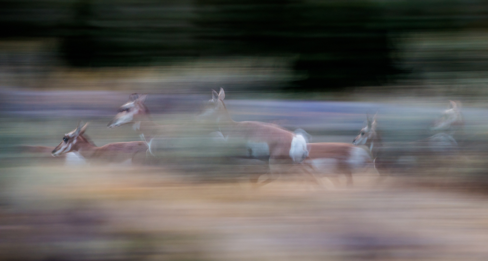 I like slowing the shutter speed down every now and again and panning to get more of an abstract look — especially when trying to convey motion. For this shot, I went even slower than usual at only 1/10th of a second. As I’ve mentioned before, pronghorn are second only to the cheetah as the fastest land mammal in the world. This herd of them was photographed last fall in Yellowstone National Park. Nikon D800 with Nikkor 70-200mm lens (at 200mm) ISO 800, f/5.6 at 1/10th of a second