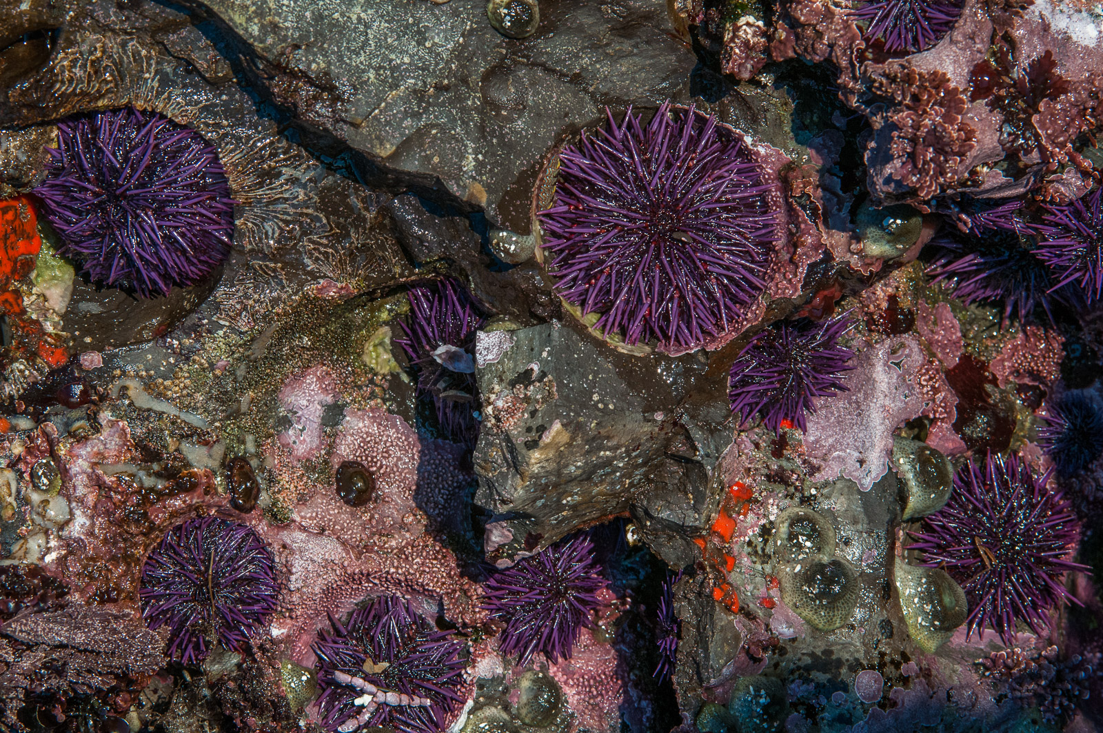For day two of Prince week, we have the purple sea urchin. These guys live near the shoreline in the Pacific Ocean from Ensenada, Mexico up to British Columbia in Canada. This shot was taken in Olympic National Park in Washington. Interesting fact of the day: purple sea urchins are important in biochemical research, because believe it or not, even though they lack a head structure, they share 7,700 genes with humans. Many of those shared genes are involved in sensing the environment. Oddly enough, they also have almost the same life expectancy as humans at just over 70 years. Nikon D300 with Nikkor 200-400mm lens (at 200mm) ISO 400, f/9 at 1/400th of a second