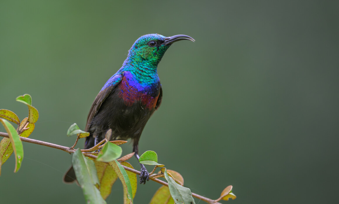 This beauty is a red-chested sunbird, captured during one of my favorite times of day while on safari — in between game drives when I get to walk around camp while most everyone else is taking their afternoon siestas. It’s a small bird found in parts of East and Central Africa. Males, like this one, have an iridescent green head, scarlet chest, and metallic blue highlights. Using a slender, curved bill, it feeds on nectar from flowers, often hovering like a tiny hummingbird, though it will also perch to feed. Nikon Z8 with Nikkor 500mm PF lens, ISO 1800, f/5.6 at 1/2000th of a second.