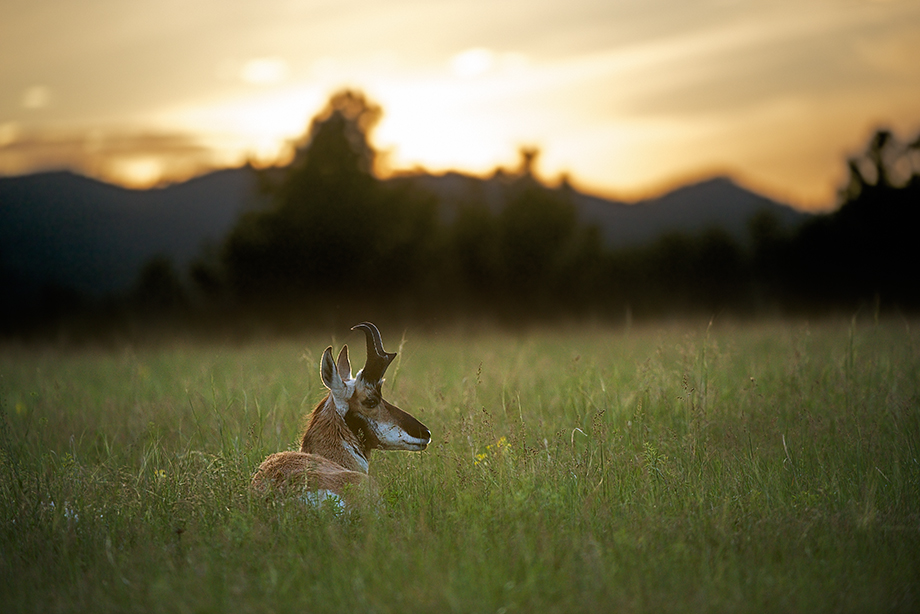 Just down the road from Badlands National Park is another of our country’s fifty-nine National Parks — Wind Cave. People primarily go to Wind Cave to explore what’s under ground, but I prefer it for what’s above. It’s a great area to view pronghorn and I photographed quite a few, including this guy just settling down for the night. I shot two frames and blended them together in post to expose for both the foreground and the sky. Nikon D800 with Nikkor 200-400mm lens (at 300mm) ISO 800, f/4 at 1/1250th of a second and 1/8000th of a second