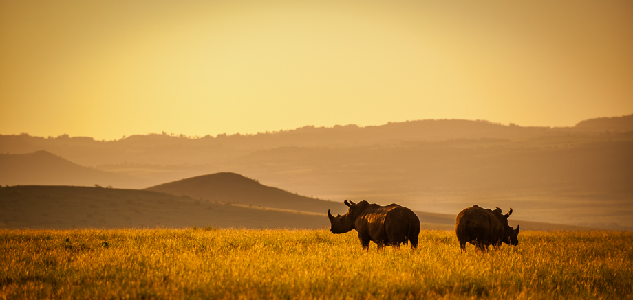 Using a warm white balance and shooting in the general direction of the sun produced the golden tones in this image. These two white rhinos were grazing early morning in Lewa Wildlife Conservancy in Kenya. Lewa is one of the best places in Kenya to see both white, as well as black rhinos. Nikon D700 with Nikkor 70-200mm lens (at 200mm) ISO 400, f/4 at 1/2000th of a second