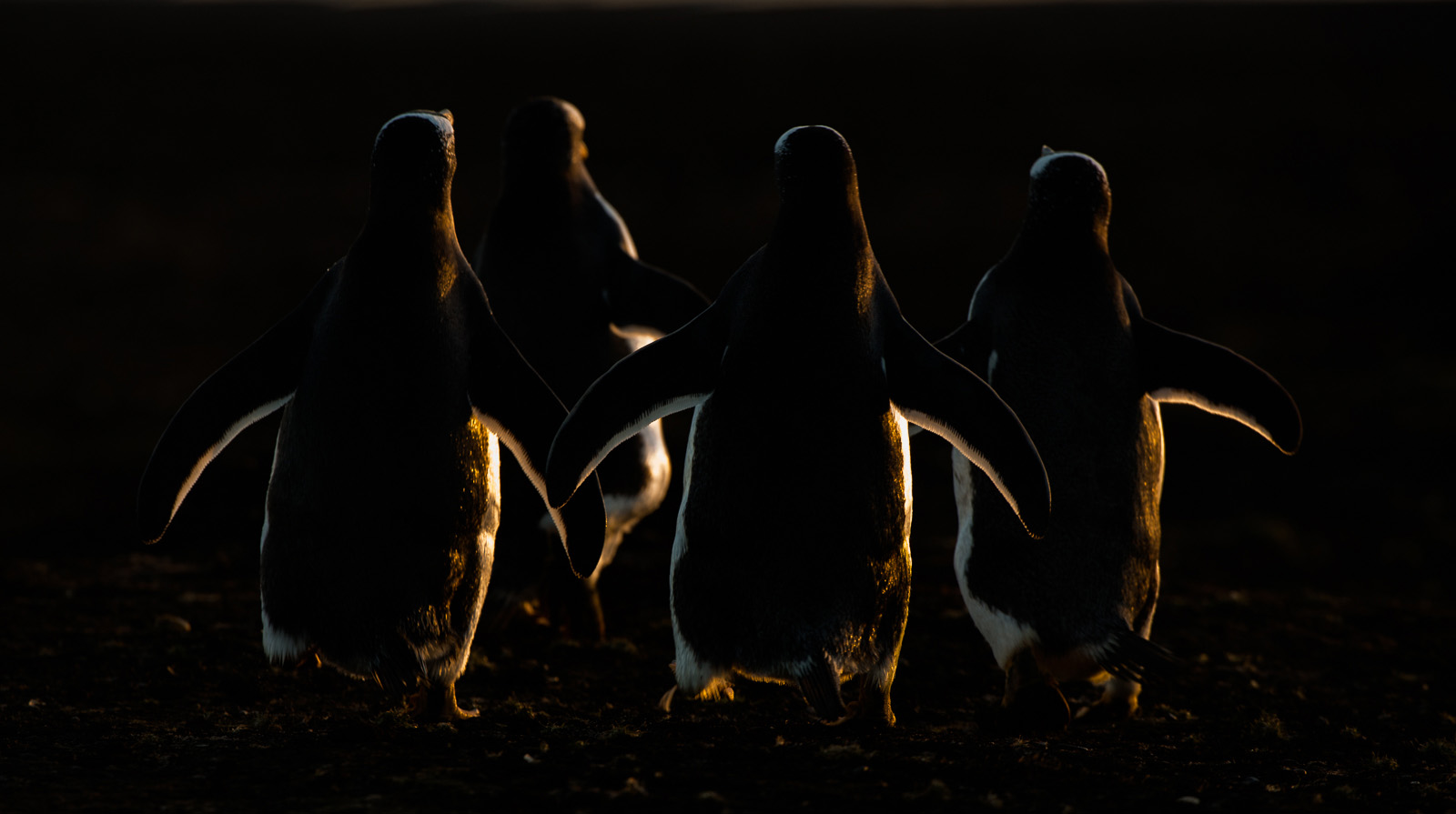 I’ve mentioned before that it is fairly easy to photograph penguins. You always know where they’ll be because they don’t venture far from their colonies while not at sea. You simply wait for good light and then begin snapping the shutter. In this case, I had nice rim light at the end of the day while these gentoo penguins were heading home after an afternoon of fishing. Nikon D800 with Nikkor 200-400mm lens (at 400mm) ISO 800, f/5.6 at 1/200th of a second