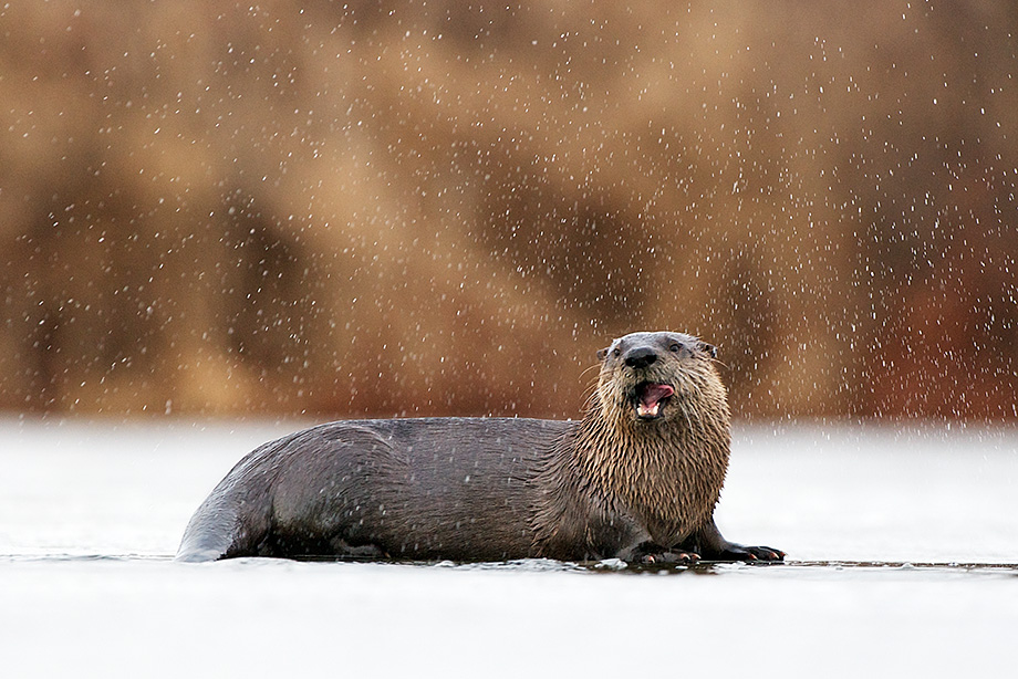 I’ve been hearing a lot of talk about river otters lately so I thought I’d post one today. This guy had just crawled up onto the ice to eat a fish. When he was done, he gave a nice head shake, sending all those water droplets into the air.