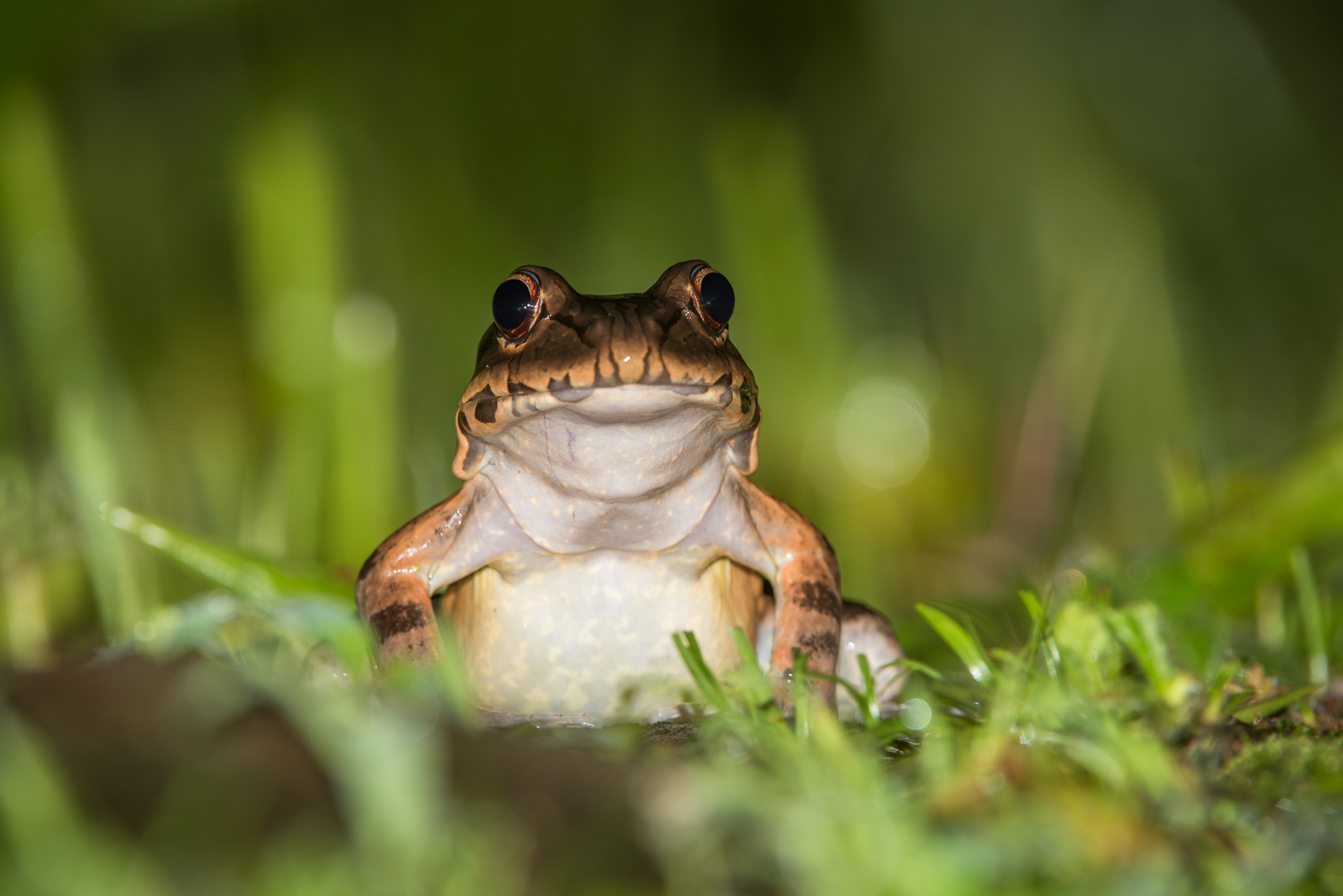Smoky jungle frogs are a common sight when hiking in tropical rainforests at night. They are very large frogs, about 7 inches long and very robust. They are strictly nocturnal and also have a noxious skin secretion. If picked up they make a high pitched scream (not that I recommend picking up a frog with noxious skin, or any frogs for that matter). Nikon D810 with Nikkor 200-400mm lens (at 400mm) ISO 200, f/9 at 1/160th of a second, two Nikon SB-900 flash units