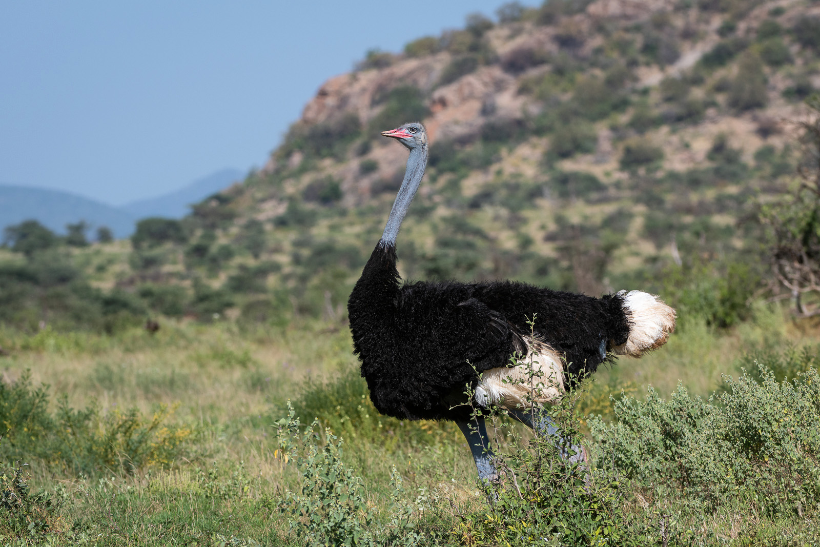 The Somali ostrich, also known as the blue-necked ostrich, was another new species for me. It was previously thought to be a subspecies of the common ostrich but was given its own distinct species designation in 2014. The males, like this one, have the blue neck and legs, which become even more blue during mating season. Photographed in Samburu National Reserve, Kenya. Nikon D500 with Nikkor 200-400mm lens (at 200mm) ISO 200, f/5.6 at 1/1600th of a second.