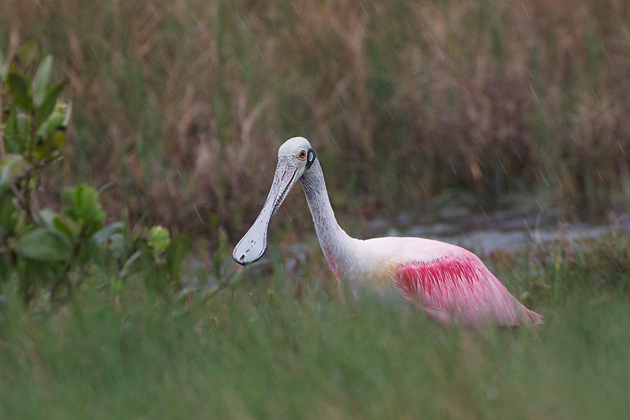 Roseate spoonbills are at the top of many birders must-see list. Especially when taking a trip to Florida, where I photographed this one. I’ve posted a few shots of these guys before, but this particular photo really gives a good look at that peculiar bill. While feeding, they swing their head back and forth through shallow water, using the spoon-shaped bill to easily sift through the mud in search of food. Nikon D300 with Nikkor 200-400mm lens (at 400mm) ISO 800, f/5 at 1/320th of a second