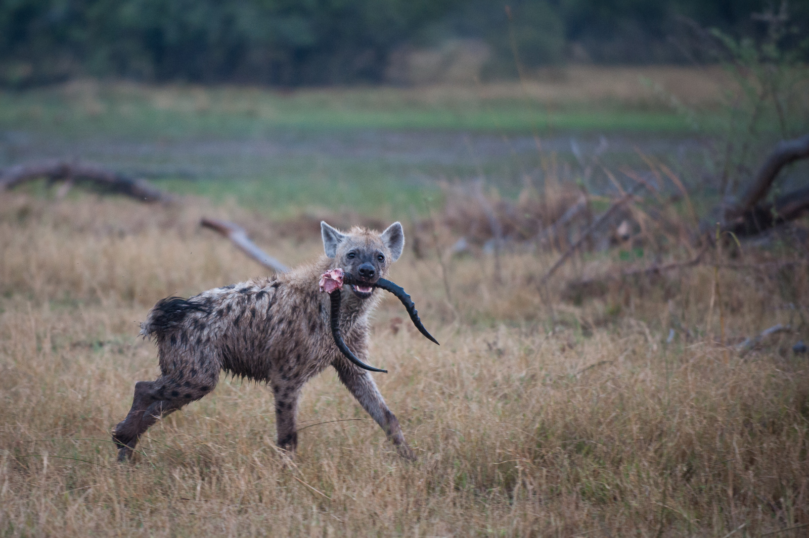 It was very early morning in Botswana, pre-sunrise, when we came upon a small pack, or as they are more commonly called, clan of spotted hyenas. They seemed more playful than usual and were chasing each other around playing keep away with what was left of an impala. Nikon D700 with Nikkor 70-200mm lens (at 200mm) ISO 1600, f/2.8 at 1/200th of a second