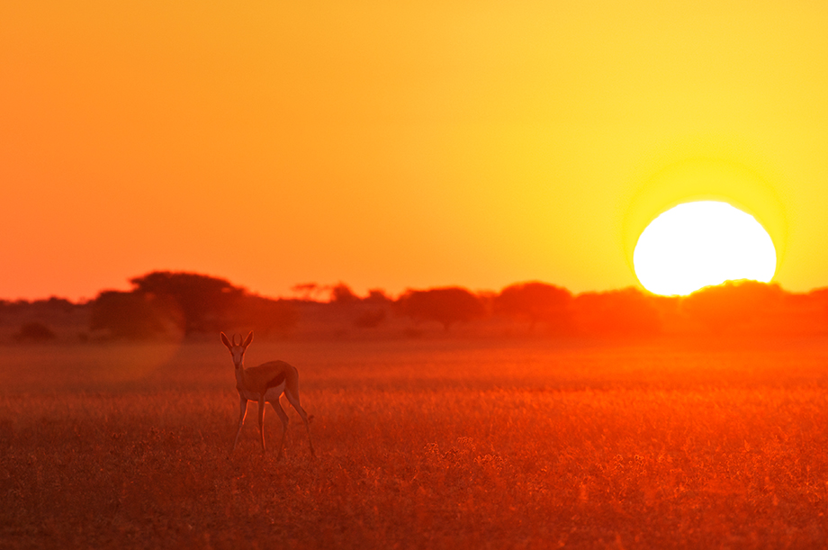 I previously posted another shot like this from Botswana. I just found this one and think I like it better. The antelope is a springbok, which are very common in the Central Kalahari Desert. It was nice each night to capture the huge sun on the horizon with my telephoto lens (which compresses space, making it look even bigger than it actually is).