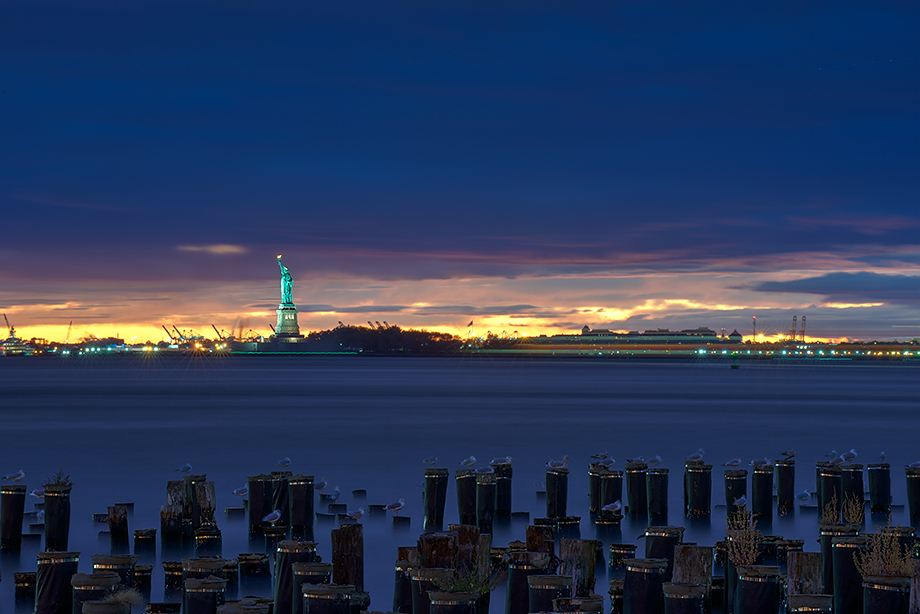 Here’s another one from Saturday night, just outside our apartment in Brooklyn. This time I included some wildlife — the flock of gulls settling in for the night on top of the old pilings. Nikon D800 with Nikkor 70-200mm lens (at 180mm) ISO 400, f/18 at 13, 3, 6, 25 and 30 seconds