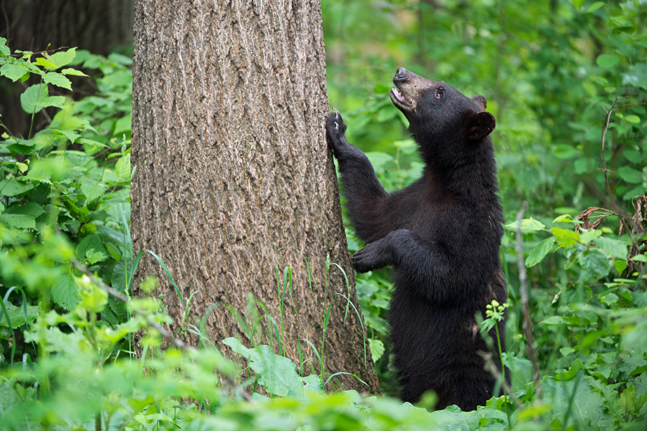 This black bear seemed a bit uncertain as to the stability of the tree it was about to climb. I took the photo at a place called the Vince Shute Wildlife Sanctuary in Orr, Minnesota. The bears are wild, but are enticed to the area by the food that is left out for them in the forest. Nikon D800 with Nikkor 200-400mm lens (at 270mm) ISO 800, f/4 at 1/100th of a second