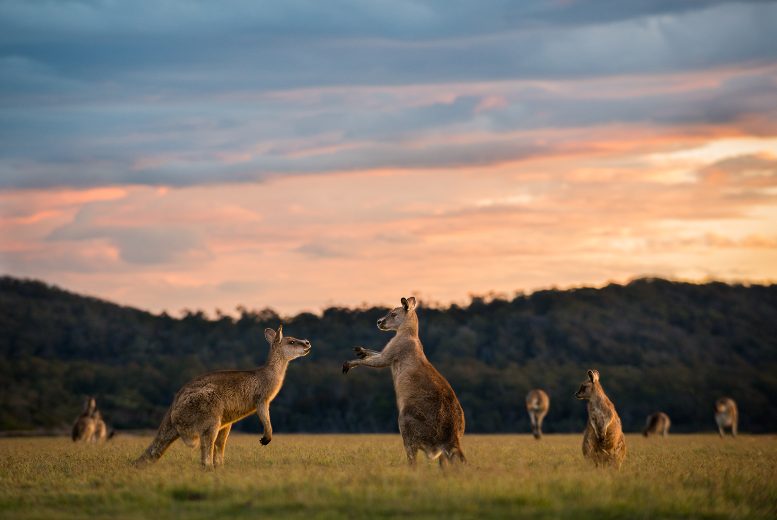 10. Okay, now the top ten, starting with a recent post from Tasmania, boxing forester kangaroos at sunset.